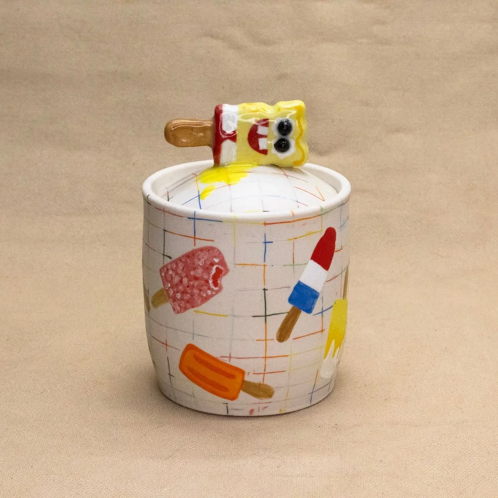 Laura Jenels (she/her) is a ceramics artist living and working in Asheville, North Carolina. Originally from Illinois. After completing her Bachelor’s degree in fine arts From Alfred University in 2022, Laura has continued to pursue her passion for creating pottery and exploring illustrations. Her work explores themes of identity, consumerism and nostalgia through the human figure and color.